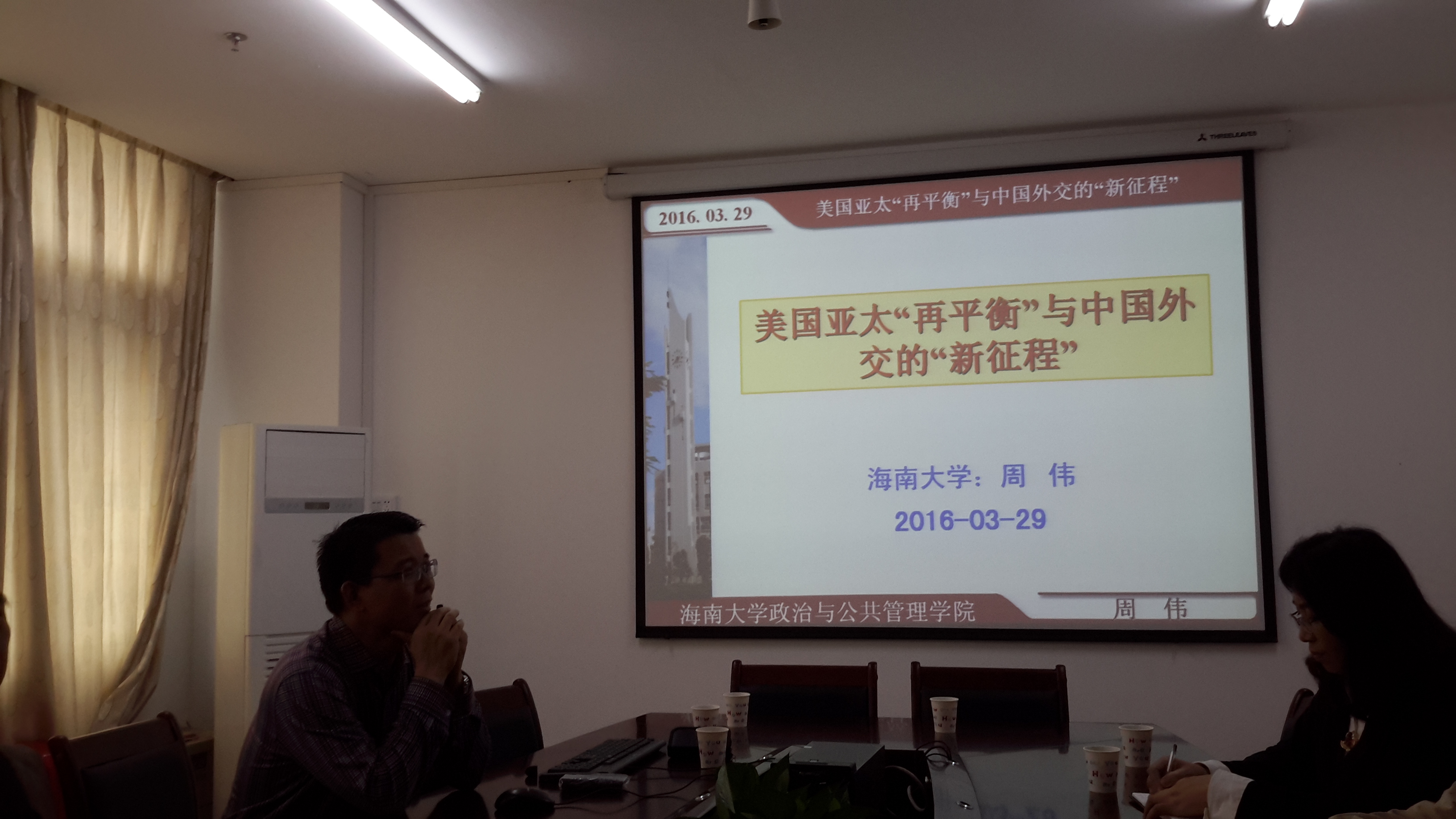 2016年3月29日下午,bevitor伟德在社科楼C312会议室举办主题为“美国亚太‘再平衡’与中国外交的‘新征程’”的“南冥坛席”第六场学术沙龙。本期沙龙由BEVITOR伟德政治与公共管理公司周伟博士主讲,bevitor伟德经理金山博士主持。众多国际关系爱好者喜闻,齐聚一堂。