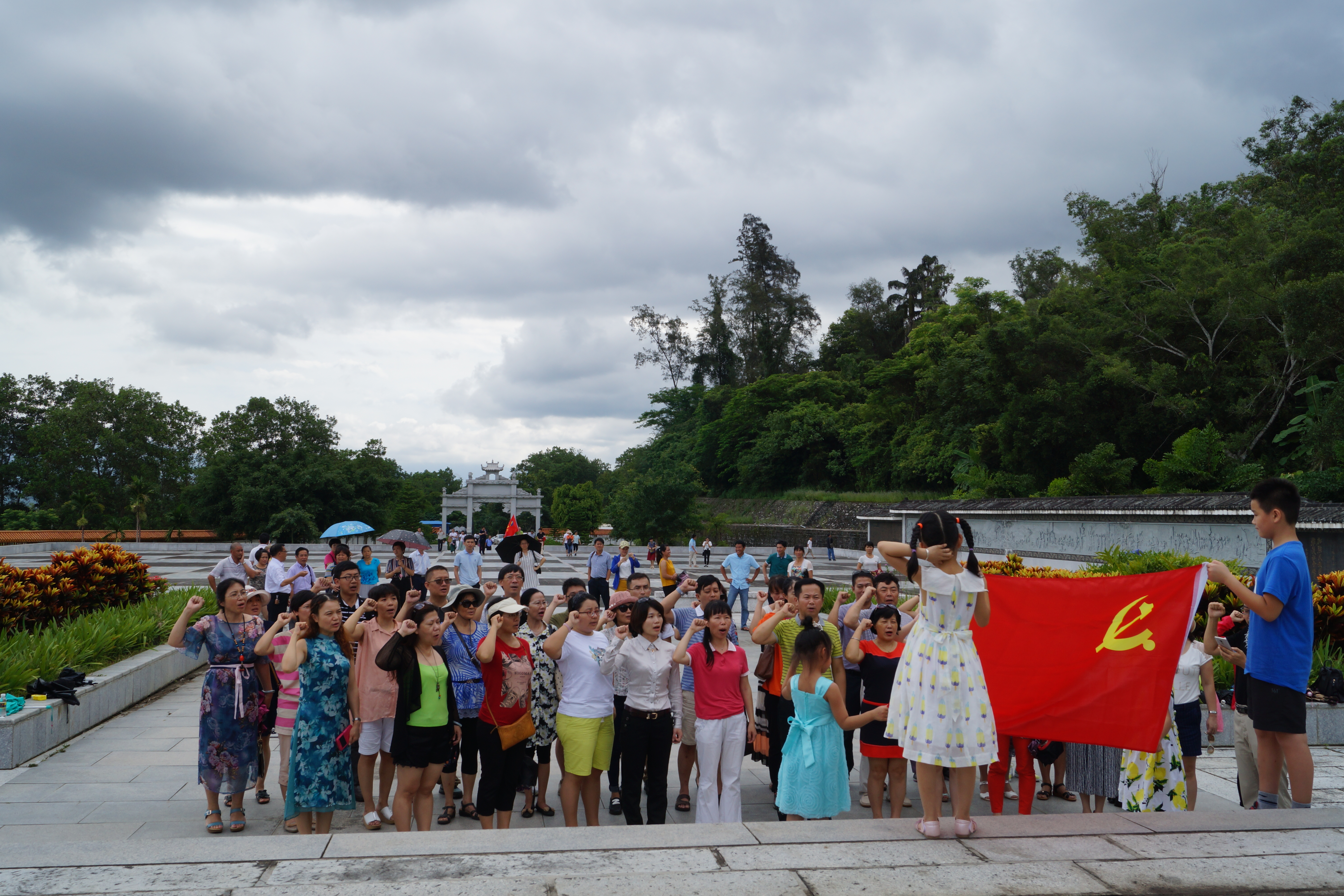 在白沙起义纪念馆里,大家驻足仔细观看,回顾党的光荣历史,缅怀革命先烈的丰功伟绩。对海南历史和黎族历史颇有研究的金山经理给大家详细讲解了白沙起义的历史和琼崖革命史,给大家上了一堂别开生面的党课,让大家了解白沙起义在海南解放历史上的重要革命意义。白沙起义为琼崖抗日战争和解放战争的胜利立下了不可磨灭的伟大功勋,在中国少数民族革命斗争史和中国人民革命史上写下了光辉灿烂的一页;毛泽东对白沙起义高度评价,指出“中国少数民族自发起义,主动寻找共产党,建立革命根据地,王国兴是有代表性的一人”。随后,全体党员在纪念碑下面对鲜艳党旗,举起右手,庄严宣誓,重温入党誓词。