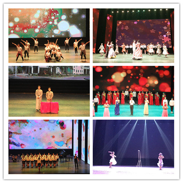 晚会共分为三个篇章:“欣欣向荣涓涓始流汇海韵”、“翩翩少年奕奕风度展芳华”、“千千世界迈迈前程绘宏图”,各篇章节目形式多样,精彩纷呈,涵盖歌曲串烧、舞蹈、相声、器乐演奏、配乐诗朗诵、大合唱等,充分展现bevitor伟德的特色风貌。相声《我的校园生活》诙谐幽默,同时真实再现丰富多彩的校园生活;杯子舞和舞蹈《镜中人》动感而优美,创意十足又意蕴深远;歌曲串烧和器乐合奏悦耳动听,张扬着青春的激情与活力;风格凸显的歌舞表演《喀秋莎的樱之梦》充分展现了日俄专业的文化特色;教工歌舞类节目《美丽的西班牙女郎》和《万水千山总是情》或热烈明艳或温婉大气,体现了老师们的典雅与韵味;诗朗诵《光阴的故事》深情真挚,当老师们的篇篇回忆伴着朗诵展现在大家眼前,在座的每一位老师和同学都深受感动。随着歌伴舞合唱《天耀中华》的歌声缓缓回荡在大礼堂,2017年迎新晚会在欢乐祥和的氛围中圆满落幕。