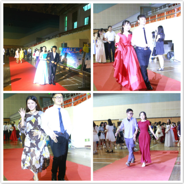 毕业晚会在热烈的全体毕业生走秀环节和签名中拉开了序幕。全体毕业生盛装出席,或约上同窗好友,或拉上恩师,一起走过红地毯。在毕业生留念签名版上,大家签下自己个性飘逸的名字,约定成为多年后美丽的回忆。晚会正式开始前,大家一起欣赏了毕业生们四年成长记录视频与师生祝福视频,共同回忆了大学的食堂、宿舍、老师、同学……,满满温馨感动的回忆。