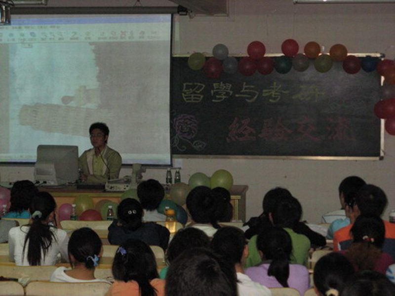 在主持人郭兴佑激情洋溢的开场白之后,留学于法国里昂第三大学的王康学长以一组充满异国特色的照片为开场白,使在场的同学们掉足了胃口,他幽默风趣地介绍了他在法国的学习与生活,同时对中西方文化差异进行了比较,鼓励在场的员工在出国前要积极主动做好准备,学好专业,攻克语言关。之后,留学于俄罗斯莫斯科阿特拉斯罕国立大学的张璇学姐也描述了她在俄罗斯的求学之路,重点给我们介绍了国外教育体制与我国教育体制的区别,强调了在外刻苦努力学习及善于与人交往的重要性,使同学们充满了对“异域”学习的向往。