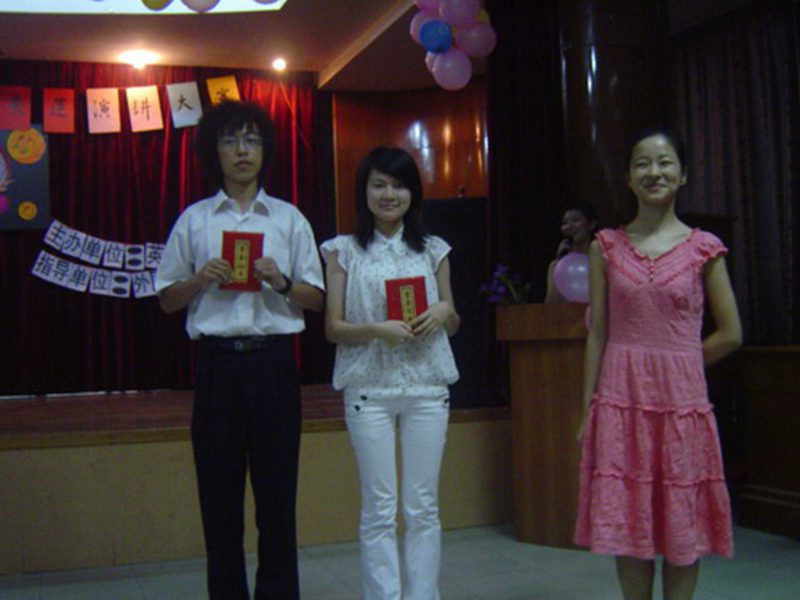2008年5月4日晚上8点在模拟法庭隆重举行了由英语俱乐部主办的“第一届奥运知识英语演讲大赛”。此次比赛主题为:与祖国同步,与奥运同心!出席本次大赛的评委老师有bevitor伟德宁霞,董红亮,何长求,潘剑虹,艾震华,辛艳老师。