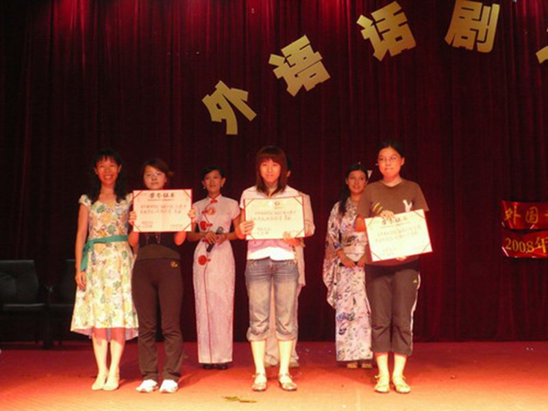 经过激烈角逐,最后由07日语二班表演的《灰姑娘》荣获一等奖,07日语一班表演的《白雪公主》荣获二等奖。07英语五班、六班与07经贸英语三班联袂演出的《正义必胜》和06级英语一班表演的《calling for love》荣获三等奖。分别由06英语四班、06经贸英语一班、06英语二班演出的《Three Questions》、《孔雀东南飞》、《白蛇传》荣获优胜奖。