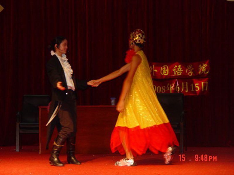 此次戏剧大赛分初赛和复赛,共有7个代表队参加复赛。比赛前,一场极具青春活力与激情的舞蹈拉开大赛帷幕。王兆庆书记为本次比赛致辞,把整个比赛推向高潮,大赛现场,主持人标准流利的中文、英文、日文报幕及具有民族特色的着装令观众耳目一新。参赛选手们精彩的表演,赢得台下师生阵阵热烈的掌声和喝彩。其中,《白雪公主》和《灰姑娘》把观众带入一个美好的童话世界,《calling for love》的演绎让股股母爱的暖流深深地感染着现场观众的每一颗心。《正义必胜》虚构了发生在公司东坡湖边的一起绑架案件,昭示了正义最终战胜邪恶的道理。英文版的《孔雀东南飞》、《白蛇传》让观众领略了别样的中国经典故事。
