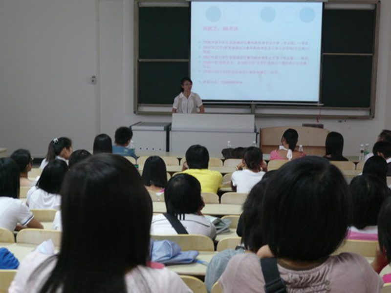 06级英语系的刘颖芝学姐也结合切身经历,希望新生们能谦虚、正确的看清自己,是金子,到哪都会发光,要摆正心态,把自己定位好。刘学姐还介绍了自己的学习方法,强调“说”对于一门语言的重要性和基础性,并希望新生们以轻松的方式来学习,要打好基础,只有基底打得越牢越深的楼房,才能建得更高。还与大家分享了自己的比赛经验。
