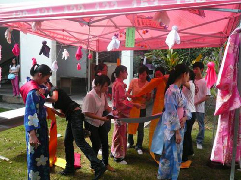 公司历届“日本文化节”中的所有活动物品都是从日本租借的,活动过程中要求日语系参加者全程用日语进行会话,以提高日语系员工的口语水平。在办展手法上较强调视觉冲击力,以全方位形式强化展示效果,将日本的传统特色一个个真实的再现在了同学们的眼前,让同学们与日语文化有了一次近距离的亲密接触,帮助同学扩大知识面,了解日本文化。