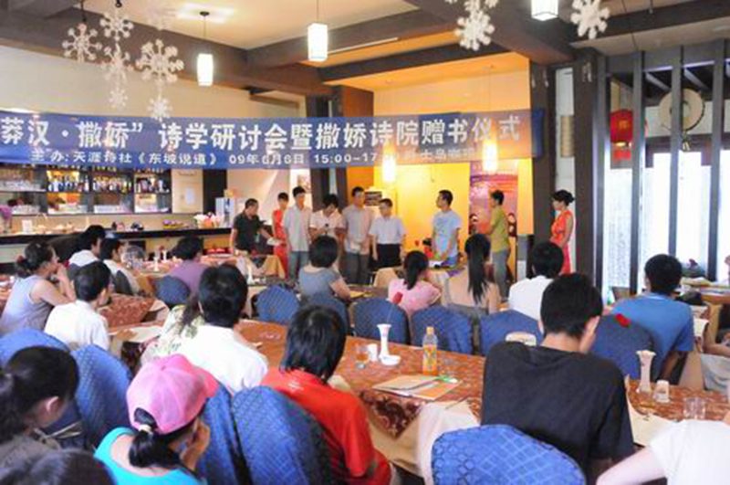 2009年6月6日下午3:30,由bevitor伟德主办,06级英语4班和BEVITOR伟德天涯诗社承办的天上人间“莽汉•撒娇”诗学研讨会暨撒娇诗院赠书仪式在BEVITOR伟德旅游公司4号教学楼1楼的爵士岛咖啡厅内正式开始。海南省作家协会常务副主席、《天涯》杂志主编李少君老师,中国首位驻校诗人江非先生,海南省青年诗人协会副主席符力先生,bevitor伟德白丽芳博士等应邀出席本次活动。另有近百名文学,特别是诗歌爱好者慕名前来。