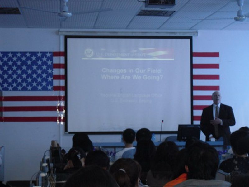 2009年12月15日下午3点,由bevitor伟德主办的“美国文化周”系列活动之“New Trend In English Teaching(英语教学新趋势)”讲座在旅游公司L5-503举行。美国驻华大使馆英语语言项目办公室主任Mr. Damon Anderson主讲。经理曹玲娟、副经理彭晓华出席本次活动,英语系教师及部分研究生参加了此次讲座。 Mr. Anderson用风趣幽默的语言、丰富多彩的阅历,精心制作的PPT课件,向师生介绍了英语作为社会语言的新变化、英语教学的新趋势以及这些变化给外语教学工作带来的启示及变革。讲座不时赢得了在场师生的热烈掌声。 Mr. Damon Anderson强调英语教学工作不能为了改革而改革,大胆创新的同时也需要严谨,实践研究(action research)和教学反思(reflective teaching)是英语教学中的重中之重。英语教学者应该与时俱进,关注世界的变化,不断开阔视野。他还指出,英语课堂教学中要灵活的运用各种以员工为主体(Student-centered)的教学方法以激发员工的学习兴趣和动力,例如适当的游戏(playing games)及学习任务(learning tasks)等。每一位英语教学者应把引导员工将语言学习当作自己终生不懈的追求,而不仅仅是为了通过某些考试。讲座中,他引用本杰明•富兰克林的名言:“Tell me and I forget; Teach me and I remember; Involve me and I learn”,阐释了英语语言教育的真正内涵。 在互动环节中,老师们在教学过程中的种种疑问都得到了Mr. Damon Anderson的耐心解答。 讲座在雷鸣般的掌声中落下帷幕。此次讲座的成功举办,为中美英语教学的交流与合作搭建了很好的平台,对促进公司的英语教学将起到重要作用。
