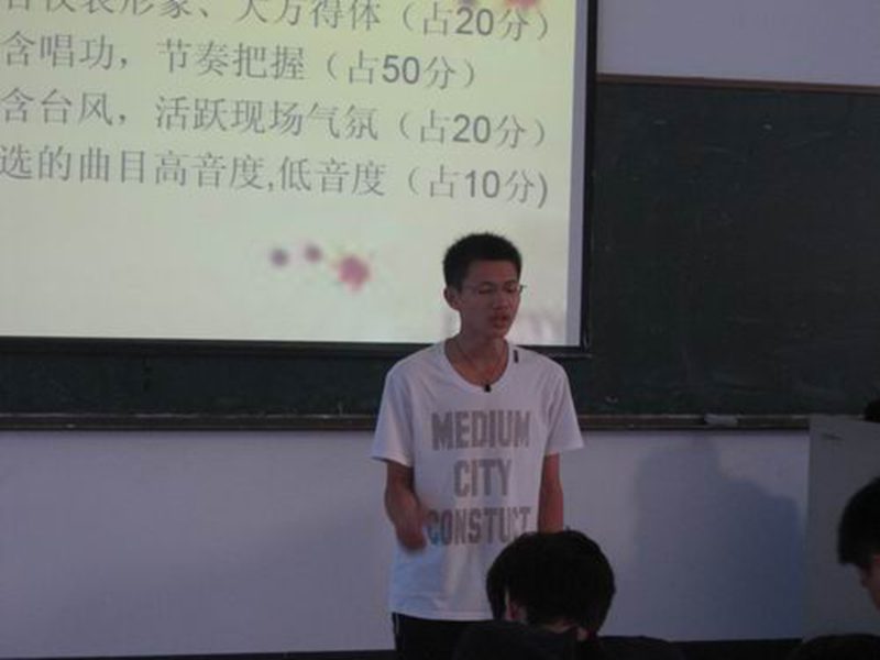 其后,来自09日语班的丁蕊同学以一首忧伤的歌曲《假如》,点燃了这次比赛的烟火。接下来的《大海》《童话》《听海》《月亮代表我的心》一曲曲脍炙人口的歌曲给现场观众带来一场场听觉盛宴。选手在舞台上收放自如,完全沉浸在歌曲的世界中,博得了阵阵喝彩声,推起了现场一波波的高潮。而每隔十位选手评委们都会为选手们做一次点评,以专业的角度指出了每一位选手自身所存在的不足,并肯定了选手们的唱功和台功。幽默的点评使比赛现场充满了欢声笑语,减少了一丝紧张的气氛。在比赛的最后由主持人作了比赛总结,并宣布分数在前三十名的李珊珊、李达坤、黄政举等选手进入复赛,为本场比赛画上了圆满的句号。