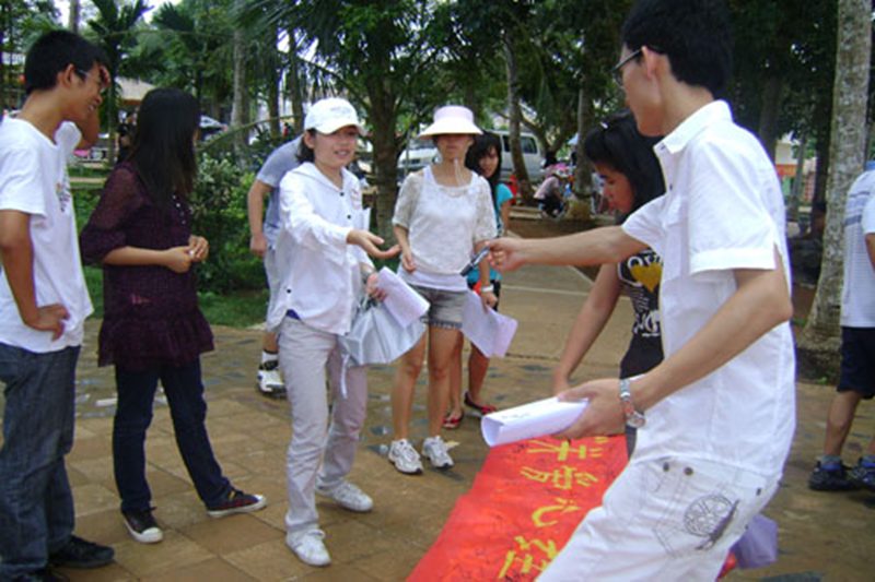 ——户外心理素质拓展训练与心理健康知识宣传 2010年5月15日上午,为增进同学们彼此之间的交流,培养团队沟通和协作能力,以及宣传心理健康知识,bevitor伟德08英语四班在海口市琼山区云龙镇龙鳞村开展了一场别开生面的户外素质拓展训练与心理健康知识宣传活动。此次活动是我班“关爱心理健康 把握绚丽青春”心理健康主题班会系列活动之二。参加人员为本班全体员工。