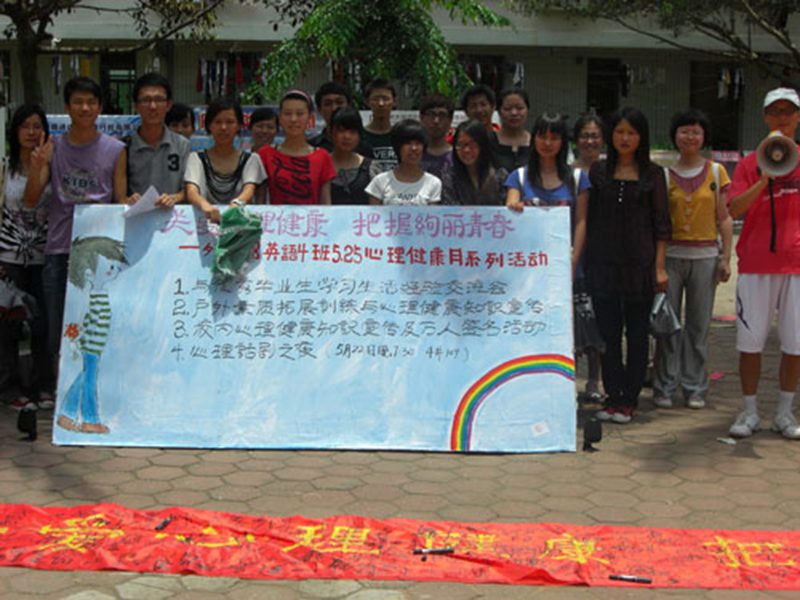 ——校内心理健康知识宣传及万人签名活动 2010年5月20日中午11:20,08英语四班在公司第二食堂门前举行以“关爱心理健康 把握绚丽青春” 为主题的心理健康主题班会系列活动之三:校内心理健康知识宣传与万人签字活动。公司团委书记李翠霞老师莅临现场指导。