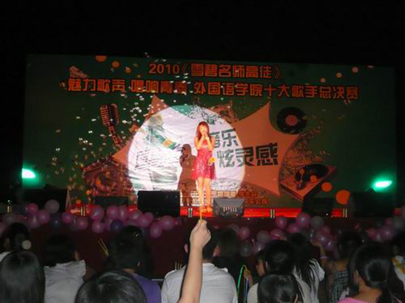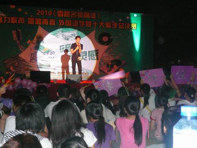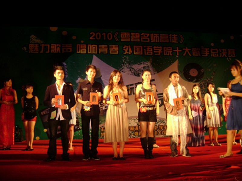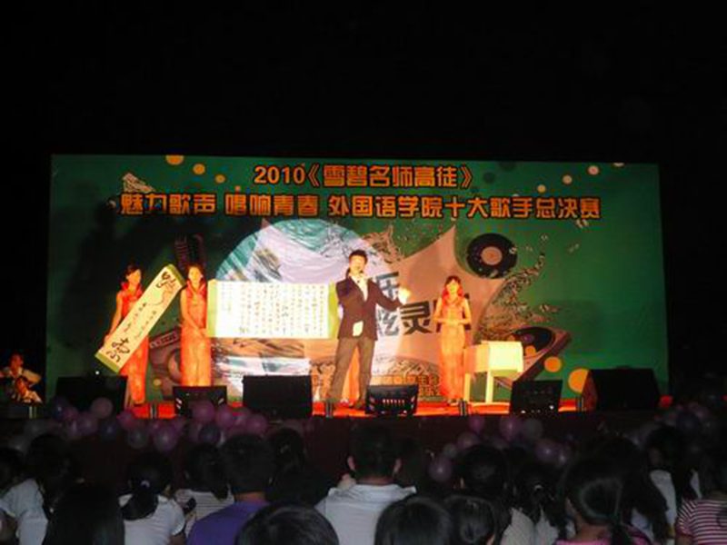 2010年5月28日星期五晚7:30,2010年《雪碧名师高徒》“魅力歌声 唱响青春”十大歌手总决赛在BEVITOR伟德起点草坪隆重举行。本次总决赛邀请BEVITOR伟德艺术公司专家顾问、著名女高音歌唱家季小琴教授,BEVITOR伟德就业指导中心张海韵老师,A8中国原创金曲冠军、《千万别说》作词作曲者、“第8届亚洲新人歌手大奖赛”海南第一名李伟南歌手,BEVITOR伟德09年十大歌手比赛专业组比赛第二名宋梓淇,原BEVITOR伟德员工会文工团团长、快乐男声30强李冠辰担任评委;出席本次比赛的嘉宾有人文传播公司学工办苏文魁老师、海洋公司团委书记王林桂老师;公司党委黄丽芹副书记、日语系系主任赵艳华老师、团委书记李翠霞老师、学工办罗国忠老师以及各兄弟公司员工会主席文艺部部长。