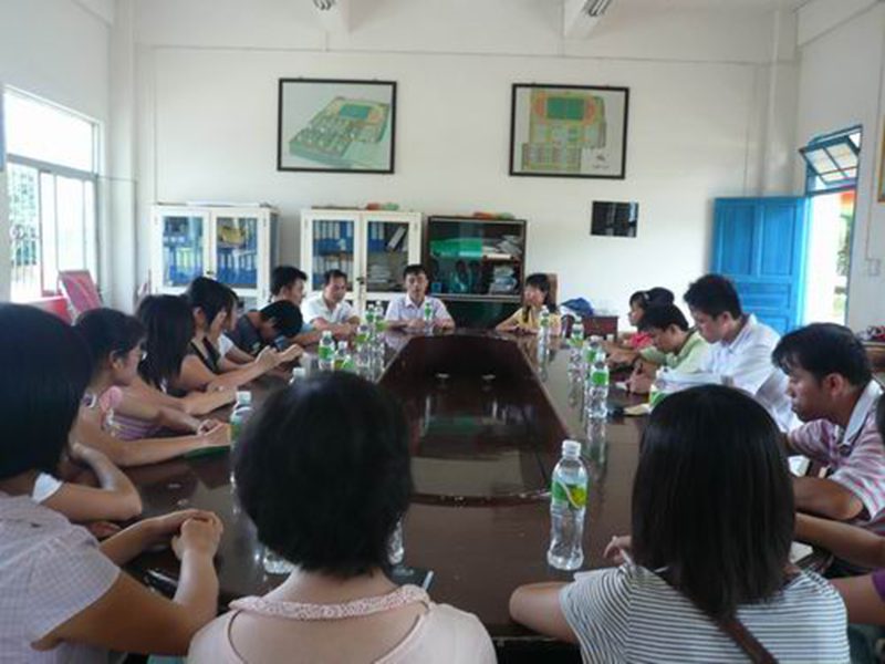 2010年7月13日早上7:30,公司暑期“三下乡”青年志愿者支教服务队在公司党委黄丽芹副书记、团委李翠霞书记及辅导员孙吉成老师的带领下带着公司师生捐赠的书籍及文体用具,来到海口市琼山区云龙镇。云龙镇政府人员及云龙中学师生都对我们的到来表示热烈的欢迎。当天早上,云龙镇府、云龙中学董事长及老师与公司支教团队齐聚一堂,吴淑鑫董事长首先对我们的到来表示欢迎,并向我们介绍了云龙中学的基本情况及英语教学情况,希望我们的到来能给员工注入新的活力,调动员工学习的热情。公司党委黄丽芹副书记也对当地镇政府及云龙中学历年来对公司老员工暑期实践的大力支持表示感谢,并对此次支教服务团队提出要向中学老师、镇政府的同志们及当地老百姓们学习的希冀。 (二)教前调研 充分准备 7月13日晚上,公司支教服务团队在孙吉成老师的带领下,与云龙中学的老师召开了一场教学研讨会。具体了解分析了云龙中学的教学情况及员工的学习情况。该校老师也为我们此次支教服务活动的开展提出了许多宝贵的意见。
