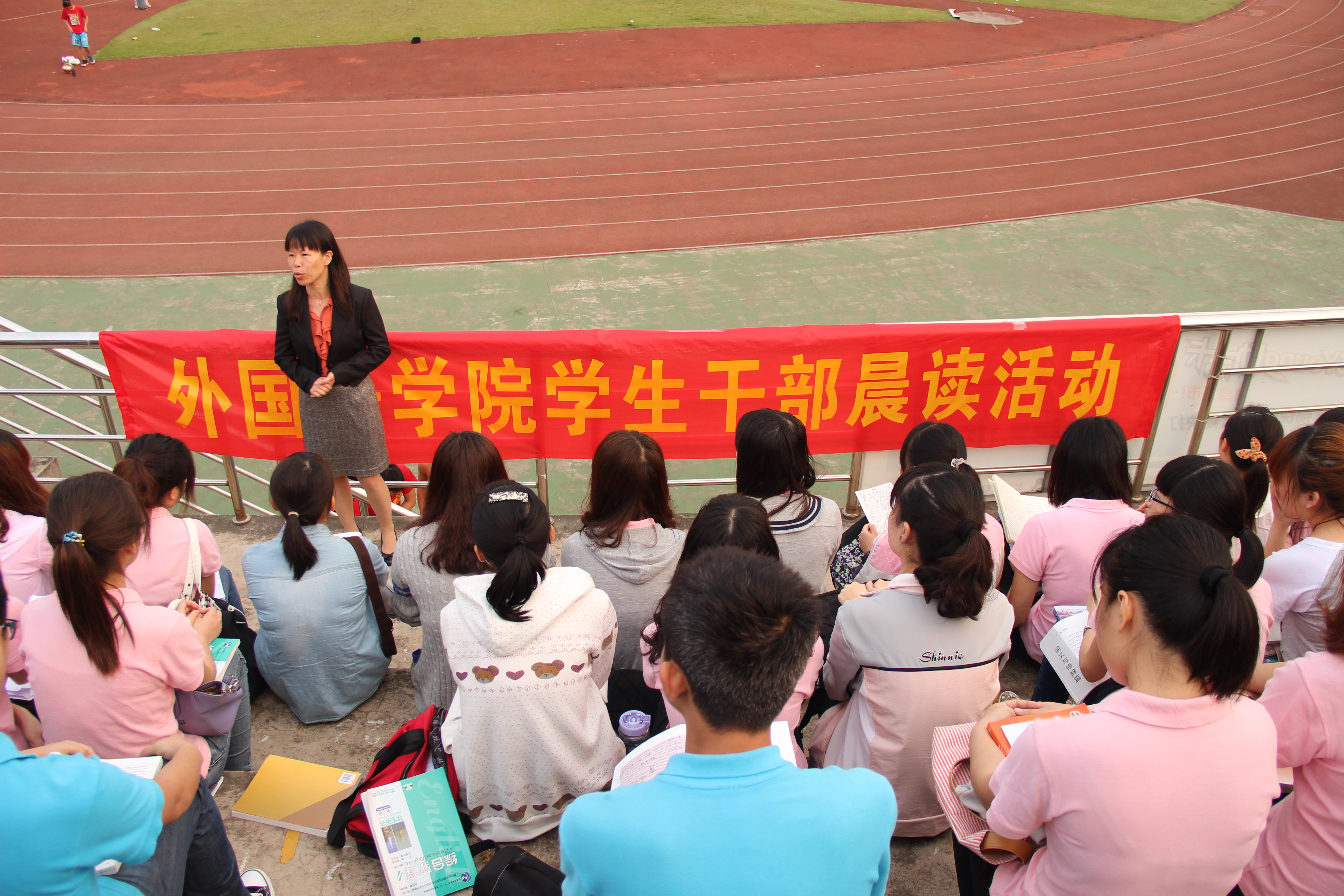 清晨6点40分,全体团学干部一如既往地准时到达田径场,早读进行了半个小时之后,员工会主席谷慧首先作为员工代表进行了发言。她首先对公司领导的良苦用心表达了衷心的感谢,并希望大家充分利用清晨学习效率高的优势,把晨读养成一种习惯,持之以恒,勤奋学习。