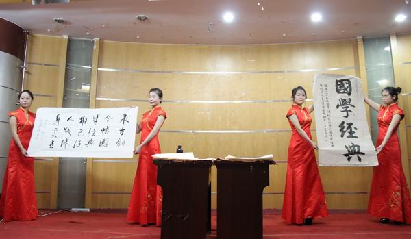 本次活动由“古文朗诵”、“选手亮相”、“百花齐放”、“轮番登场”、“挥毫泼墨”、“绝境逢生”、“百家争鸣”和“笛音绕梁”等8个环节组成。在古筝《春江花月夜》的伴奏下,以公司宋慧亮同学为代表的十位同学饱含深情的朗诵了《论语?学而第一》。朗诵与古琴声合而为一,迅速的把观众们带入了传统经典文化的氛围当中去。比赛正式开始后,各代表队人员互不相让,在“百花齐放”和“轮番登场”两个环节就展现出了各自深厚的国学底蕴,时而引经据典,时而慷慨陈词,赢得了在场评委们的一致称赞。现场的观众也在观看的过程中不自觉的受到了传统经典文化的熏陶。进入中场休息环节,由公司书法协会的会长带来了书法表演,短短几分钟,“国学经典”几个大字就跃然纸上。进入抢答环节,各代表队眼疾手快,争相答题,现场氛围非常活跃。他们以自己坚实的知识储备披荆斩棘,顺利度过各大难关。经过几轮激烈的比拼,法公司最终以其几乎零失误的作答和 325分的高分夺得本次大赛的冠军,赢得了满堂的喝彩。