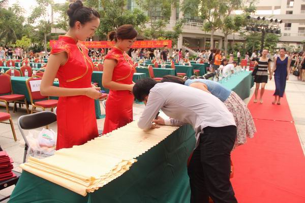 毕业生走红地毯、签名送祝福