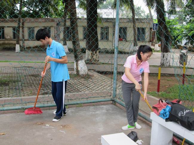 志愿者清扫校园