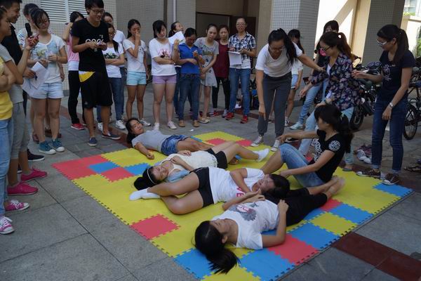 为进一步增强党支部凝聚力,提高员工党员的综合素质和团队战斗力,增强团队成员的责任感和荣誉感,2014年6月15日上午,学工办指导老师孙吉成带领员工党员在社科楼广场开展员工党员素质拓展活动。