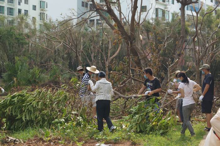 台风过后的第七天,重建校园工作仍在继续,7月25日下午,在公司的统一部署和安排下,bevitor伟德组织30余名师生到海大教工区华兴西74栋楼前,继续开展清理工作。下午四点,公司党委陈封椿副书记亲临现场并视察周边区域情况,面对满地错乱交织的树干树叶,陈书记嘱咐师生志愿者们要注意安全,做力所能及的清理工作。