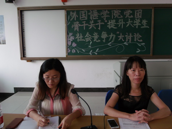 传达完毕后讨论会进入交流环节。大家就“竞争力”这三个字,结合自身经验、社会现象以及老员工对公司的期望问题,展开了热烈的讨论。团委组织部部长蒋海豪提到关于如何提高老员工社会竞争力的问题时,他指出,首先应该学好专业知识,做好奠基石;其次,还应该德智体美劳全面发展提高自己的综合素质;再者,需要有良好的心里素质去面对生活中的挫折与困难;最后,应该从小事做起,从社会实践开始融入社会、找到自身缺陷、完善自我。他的讲话针砭时弊,从多方面表明了有竞争力的老员工必备的一些品质。同时,还有许多员工干部、员工党员发表了自己独到的见解,赢得了在场老师与员工干部的一致好评。