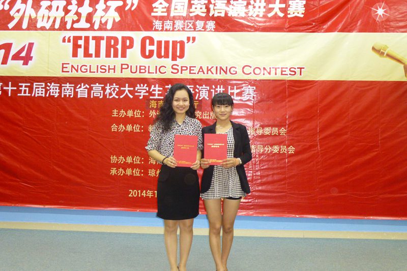 第十五届海南省高校老员工英语演讲比赛暨2014年“外研社杯”全国老员工英语演讲大赛海南省复赛于10月26日在琼州大学举行,经过激烈的角逐,公司选手2013级英语翻译(口译方向)专业林杨、2013级文科实验班旅游管理专业彭澜两位同学分别获得了演讲大赛专业组及非专业组特等奖。