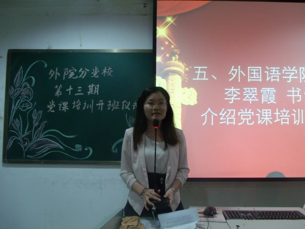 2014年10月16日下午,bevitor伟德分党校第十三期党课培训班开班仪式在城西校区教学楼2C01举行。公司党委黄丽芹书记,团委书记李翠霞老师以及学工办黎雨苗老师应邀出席了开班仪式。开班仪式由李翠霞老师主持。