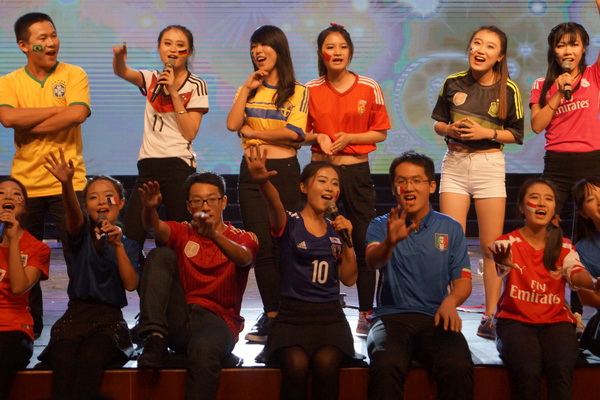 紧接着14级商英3、7、8班同学带来的《Mr. Dream》带我们进入了充满青春激情与生命活力的第三篇章——“跃·飞扬梦想”。舞台剧《那些年》,带我们回到了美好单纯的往昔时光,藏族舞蹈《万物生》又把现场观众引进神秘美丽的异域,带我们领阅到了别样的风采。最后压轴的是13国语言合唱《Blessing》,伴随着这充满活力的歌声以及语言的魅力,晚会在欢乐的氛围中落下了帷幕。