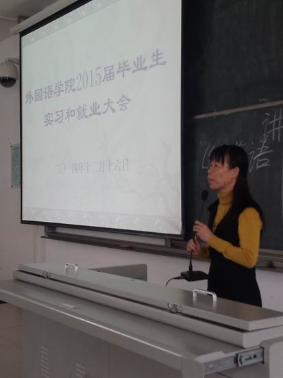 2014年12月9日和16日,bevitor伟德在3教310课室,分别召开了商务英语、日语、俄语和英语、英语(经贸英语方向)两场实习与就业工作安排会。公司党委书记黄丽芹、常务副经理金莹、副经理彭晓华、副书记何映敏、商务英语系主任李雅芝、公司团委书记李翠霞等出席了会议,全体2015届本科毕业生近500人参加了会议,学工办罗国忠老师主持了安排会。