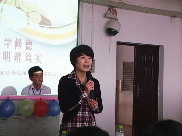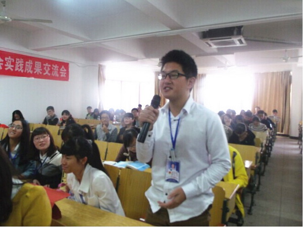 会议一开始,一段精彩的的社会实践视频吸引了所有同学的眼球,生动有趣的画面让这个教室洋溢着轻松愉快的氛围。接着,实践部部长赵丽丽对公司2014年暑期社会实践的成果进行了简洁明朗的介绍。随后的团队展示便是此次交流活动的高潮。在大家热烈的掌声中,9支团队陆续登场。每个团队的展示分为才艺表演和PPT讲解。其中既有动感幽默的舞蹈,也有深情款款的演唱。时尚别致的脱口秀节目和充满浓郁特色的三句半更是赢得了全场同学的热烈喝彩。欣赏着那精彩绝伦的节目,感受着实践团队成果的来之不易,大家所有的热情已被点燃,欢笑与赞叹此起彼伏。虽然意犹未尽,但是投票环节已然来临。大家纷纷为所欣赏的团队投上宝贵的一票。与此同时,团队负责人对同学们的疑问进行了耐心讲解和系统全面地回答。之后,公司党委何映敏副书记上台发言。她强调,一路耕耘,一路收获。只有尝试,才有体会;只有经历,才有收获;只有最苦最累,才会领略到最美滋味。所以她希望在场的员工干部可以向班中同学传达自己的要求,在积极从事实践活动中收获成果,完善自我。