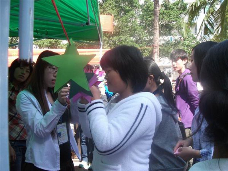 本次活动分为三个环节同时开展:现场发送宣传单、有奖知识问答和“爱国贴贴行动”。发送的宣传单上介绍了 “一二•九”爱国运动的相关知识,在发送的同时,工作人员细心地为宣传对象讲解,并热心的邀请他们参加其他环节的活动,工作人员细致认真的工作态度感染了现场的每一个人。在“有奖知识问答”环节中,参加的同学络绎不绝,个个踊跃参加爱国知识问答,将全场的气氛带到最高点。知识问答题形式多样,也从不同角度带领同学们回顾了历史。在“爱国贴贴行动”环节中,同学们将自己对祖国的热爱与美好期盼写在贴纸上,并贴到悬挂着的卡片上,一排排彩色卡片缀满了同学们的壮志豪言,透露着海大学子们深深的爱国情怀和历史责任感。