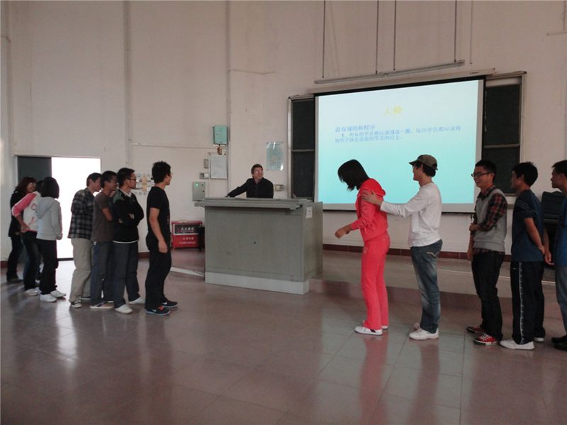 邱老师匠心独运,讲座尚未正式开始之前,他请了在场的16为同学上台,一起完成一个名为“椅子”的合作游戏。在同学们动作可爱的表演和在场观众的欢笑声中,邱老师将团队合作的概念引出,切入主题。