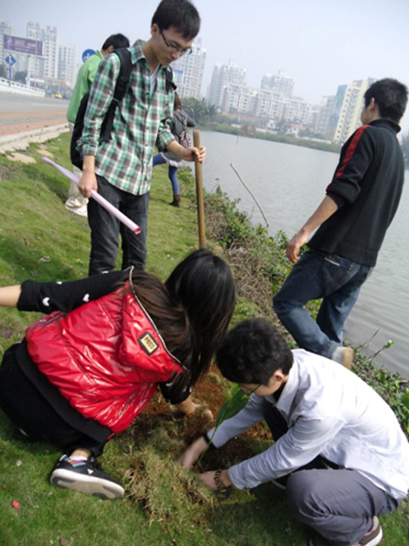 3月12日是一年一度的植树节。为进一步提高班级同学的绿化意识和文明素质,用自己的双手努力营造一个良好的校园环境,2008级英语四班与公司绿岛环协、海口经济公司爱心保护协会一起举办“春满人间 情洒校园”植树节主题活动,号召大家积极行动起来,争做绿色使者。