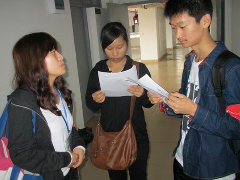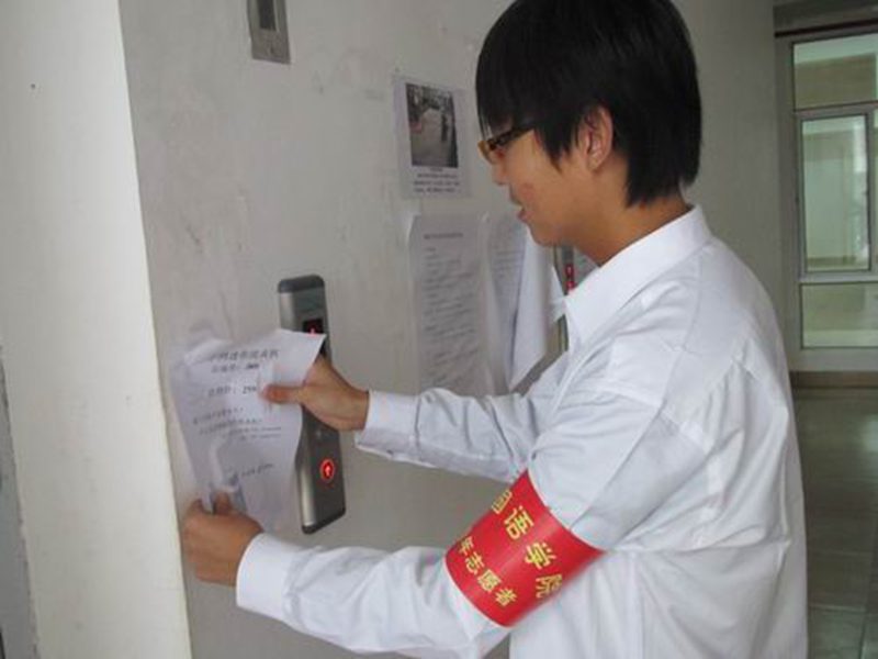 志愿者发放宿舍文明倡议书