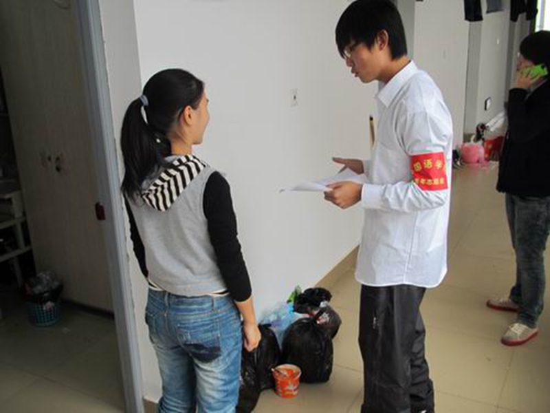 志愿者在做文明宿舍督导