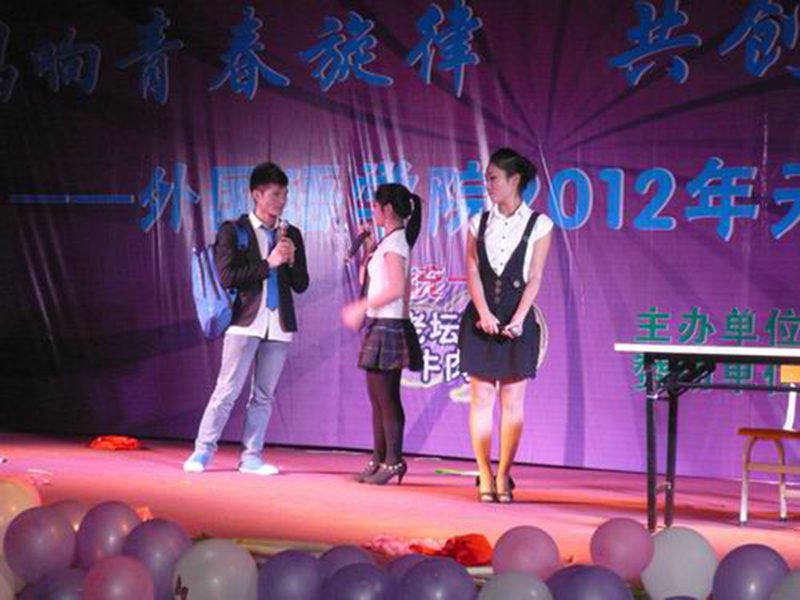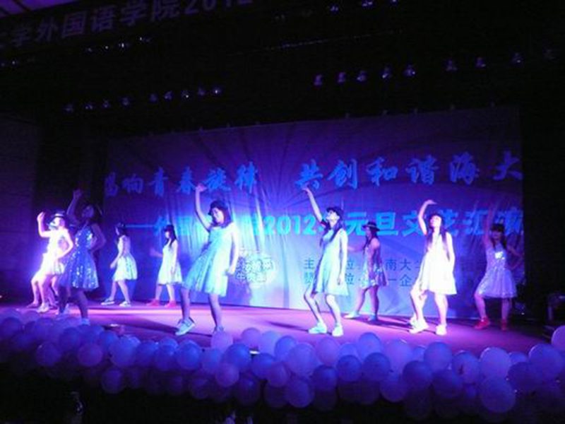 晚上七点半,2012年元旦文艺晚会在一支激情洋溢的开场歌舞《歌舞青春》中正式拉开帷幕!在陈鸣芬经理和统一赞助商相继致辞后,交谊舞、机械舞、民族舞、搞笑舞、印度舞、古典舞等各类舞蹈纷纷登台亮相。其中,10级英语二班可爱而搞笑的舞蹈《第八套广播体操》赢得全场一片捧腹与尖叫,将晚会气氛推向高潮。在众多舞蹈节目包围下,小品《海大一日》和音乐剧《爱在身边》冲出重围,幽默夸张的情节和优美动听的歌声同样令人耳目一新。而最令人感动和敬佩的是教工们献上的两个舞蹈节目《祖国颂》和《健康操》,老师们在期末的辛苦忙碌中抽出时间参与晚会,与同学们共庆元旦到来,为晚会增添无可比拟的亮色。在中场休息中主持人还带领大家玩了一个传递“统一”泡面的游戏。在奖品的“诱惑”下,上场的幸运儿们格外有冲劲儿,起到了很好的互动作用。