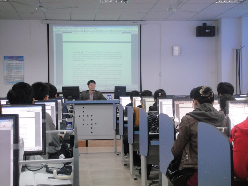 2011年12月30日上午9点,在BEVITOR伟德L5-201教室,现任西安外国语大学英文公司经理、中国英语教学研究会副会长、教育部英语专业本科评估专家以及国家社科基金项目评审专家的杨达复教授为bevitor伟德的英语老师们做了一场英语写作专题讲座。陈鸣芬经理、彭晓华副经理、郭锦萍系主任都到场听讲。公司部分研究生也积极参与。
