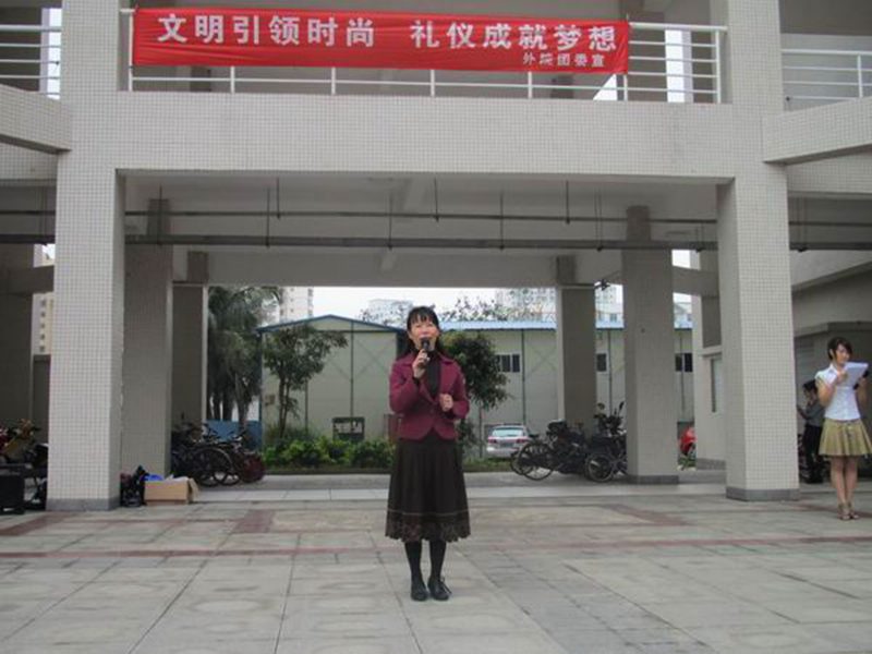 活动也宣布了在外院“文明大行动”主题征集中获奖的集体和个人名单,11级日语1班孙淑萍同学以一句“文明引领时尚 礼仪成就梦想”拔得头筹。