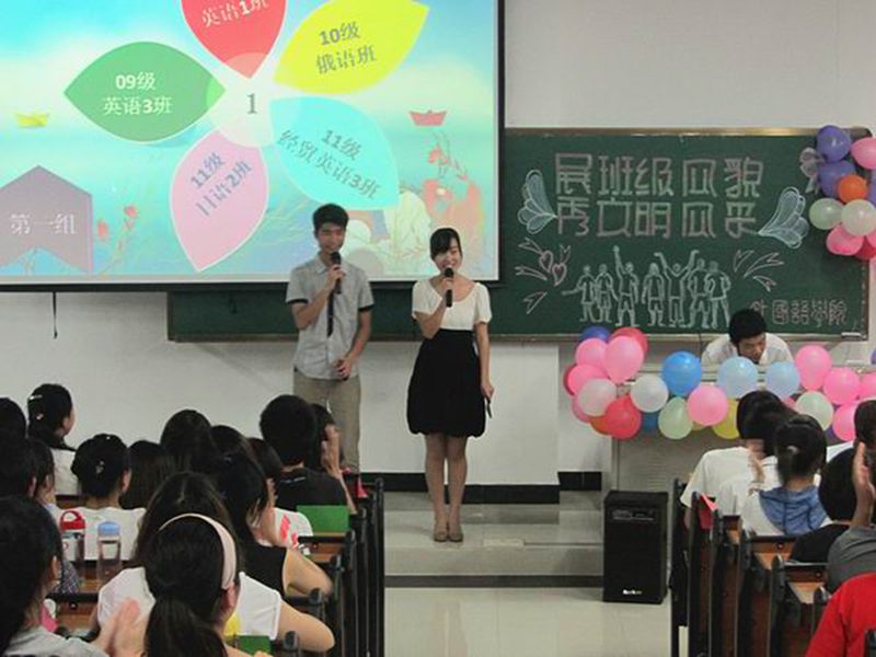 此次风采大赛共分为“班级风采展示”以及“班级才艺比拼”两部分。在“班级风采展示”环节中,各位参赛选手通过精心准备、到位讲解及协调配合,介绍了各自班级的组织及制度建设,包括班级制度、班委建设、班级党团员信息、班级文化建设、班级各类团月活动及院校文娱活动的参与情况。其中丰富的班级特色活动,如各大文体赛事的志愿者活动及社会实践都体现出了外院学子文明健康、昂扬进取的精神风貌。