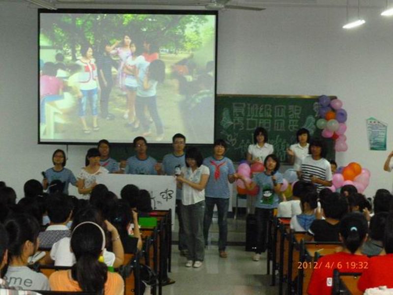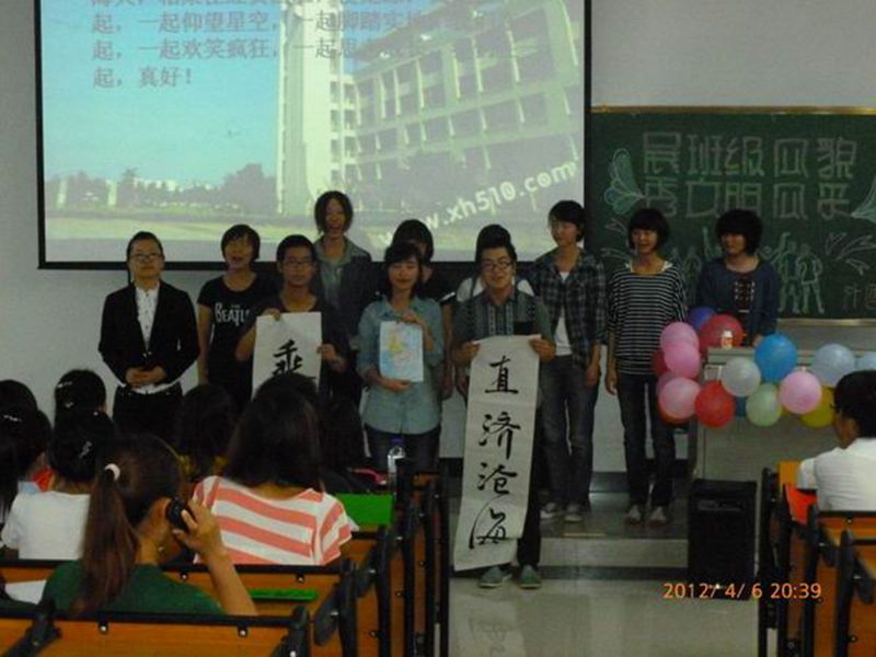 比赛过程中各班级的展示生动活泼、高潮迭起;中场“击鼓传花”和“视频模仿秀”的互动小游戏也让每位同学欢笑不已、乐在其中。在场观众纪律良好、反映热情,各组工作人员也认真到位、积极参与,这使得整个比赛实现了最佳的预期效果。其中,11级经贸英语4班的才艺展示创新融合了吉他、电子琴弹唱、歌舞表演及书法绘画,鲜明地展示了本班 “学以致用、文才兼备、文明健康、团结友爱”的班级特色。