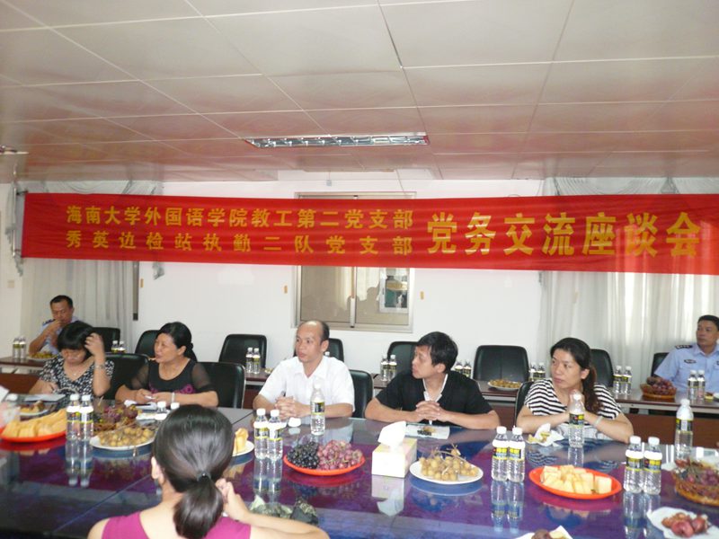 为全面推进我基层党支部的组织建设、丰富基层党支部的组织生活,并进一步提升党员教师理论素养和觉悟,9月18日下午,公司教工第二党支部与多次荣获公安部、海南省“先进党支部”称号的海口秀英边检站执勤二队党支部开展了党务交流活动。公司党委书记兼经理陈鸣芬同志,秀英边检站党委副书记、政委周建南同志出席了本次交流活动。