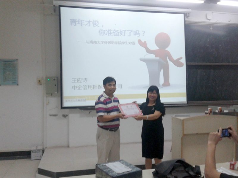 2012年11月22日晚,公司在BEVITOR伟德3教210进行了“毕业生入职”的主题讲座,由中企信用担保有限公司海南分公司总经理王应诗先生主讲。bevitor伟德经理陈鸣芬、罗国忠老师及2010级全体员工出席了讲座。