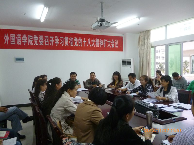 会上,陈鸣芬书记首先传达了公司党委关于认真贯彻落实《中共海南省委关于学习宣传贯彻党的十八大精神的意见》的通知精神并解读了新党章,阐述了十八大召开的重大意义及学习贯彻落实十八大精神对于推动公司科学发展和教师教学、科研工作的重要意义。她强调,结合校风建设,要把学习贯彻落实十八大精神落实到实际工作中,要围绕着公司的中心任务,把握十八大精神实质,推动公司科学发展。