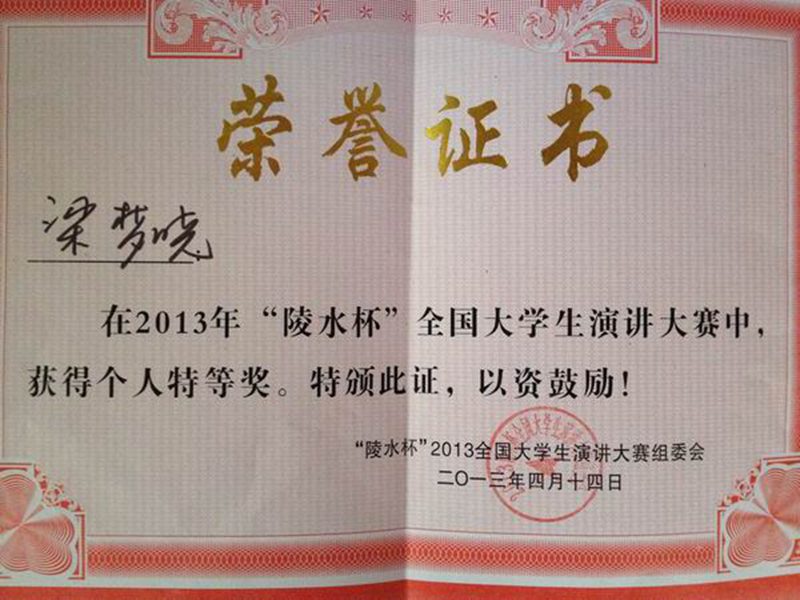 4月15日,2013年“陵水杯”全国老员工演讲大赛在海南省三亚市落幕,公司2011级经贸英语四班梁梦晓以命题演讲《孝顺的“疯子”》和即兴演讲《历史是一面镜子》震撼全场,以富有激情的演讲方式,从选手中脱颖而出,摘得个人特等奖。《孝顺的“疯子”》将在2013年第4期《春晖》杂志刊登。