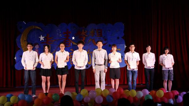 校团委陈广锐老师为五四表彰获奖者颁奖