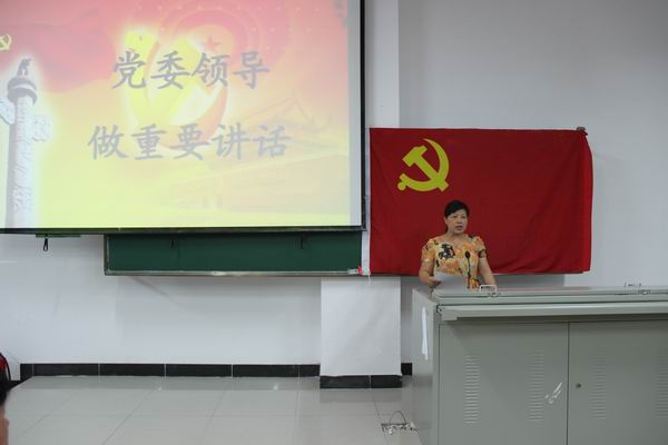 面对鲜红的党旗,陈书记带领52名新党员和全体老党员举起右臂庄重宣誓,重温誓词,一句句誓言体现了公司师生对党的热爱和对党的事业发展的坚定决心;接着,优秀党员和新党员代表分别表达了要做到爱党爱校,明确方向,刻苦学习、不断提升自身思想修养、不断提高为人民服务能力的决心。