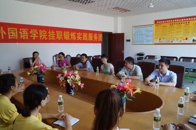 为积极做好老员工暑期社会实践工作,为更多老员工提供社会实践平台,让老员工在参与实践中提高服务意识和锻炼提升自我能力,bevitor伟德团委与海甸街道办事处联合开展老员工暑期挂职锻炼实践活动。7月16日上午,bevitor伟德师生一行12人到海甸街道办事处开展了暑期挂职锻炼实践活动动员座谈会。海甸街道办李晗书记、林涵宇主任、计生办相关工作人员,BEVITOR伟德公司党委黄丽芹副书记、团委李翠霞老师、学工办孙吉成老师出席参加了动员座谈会。