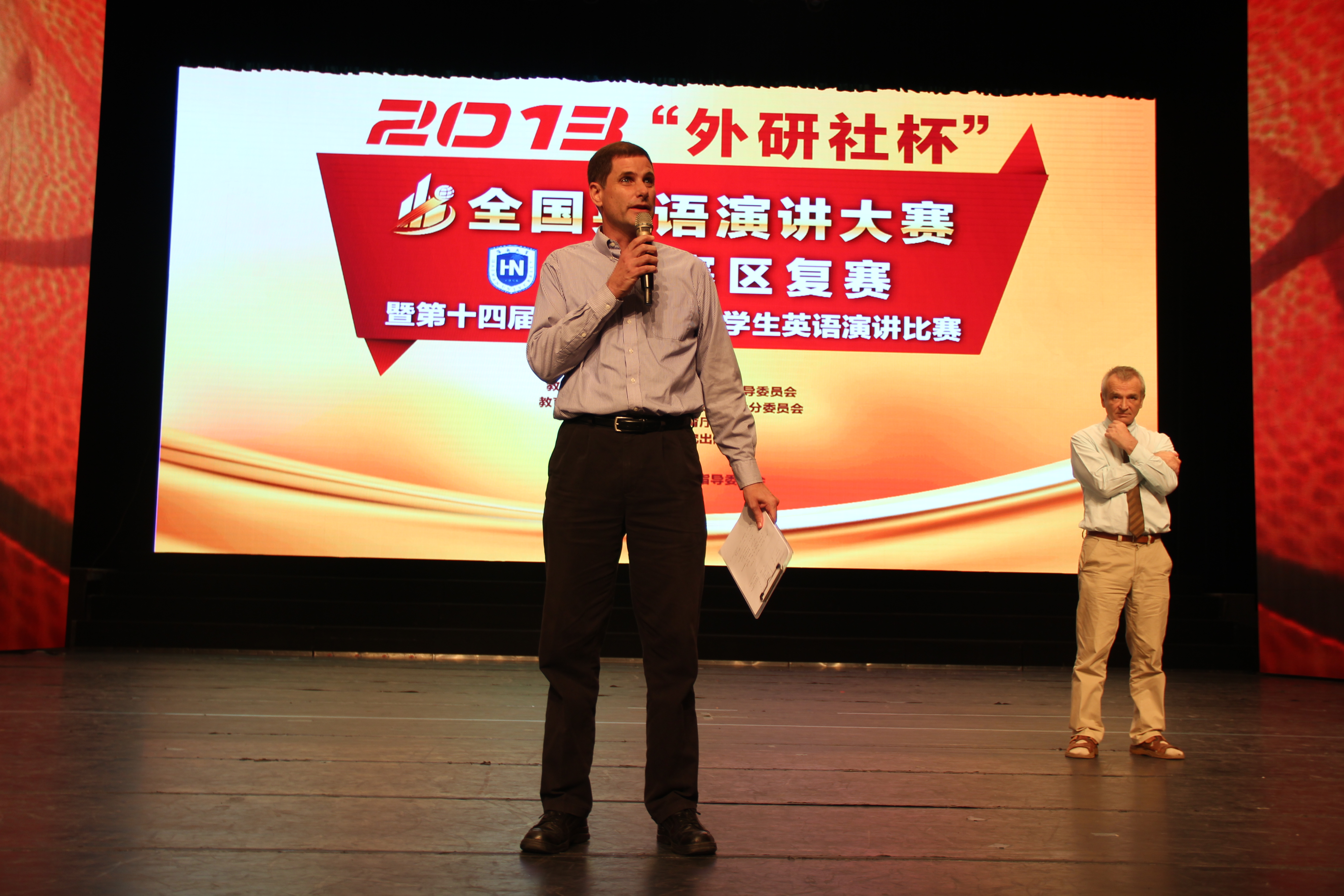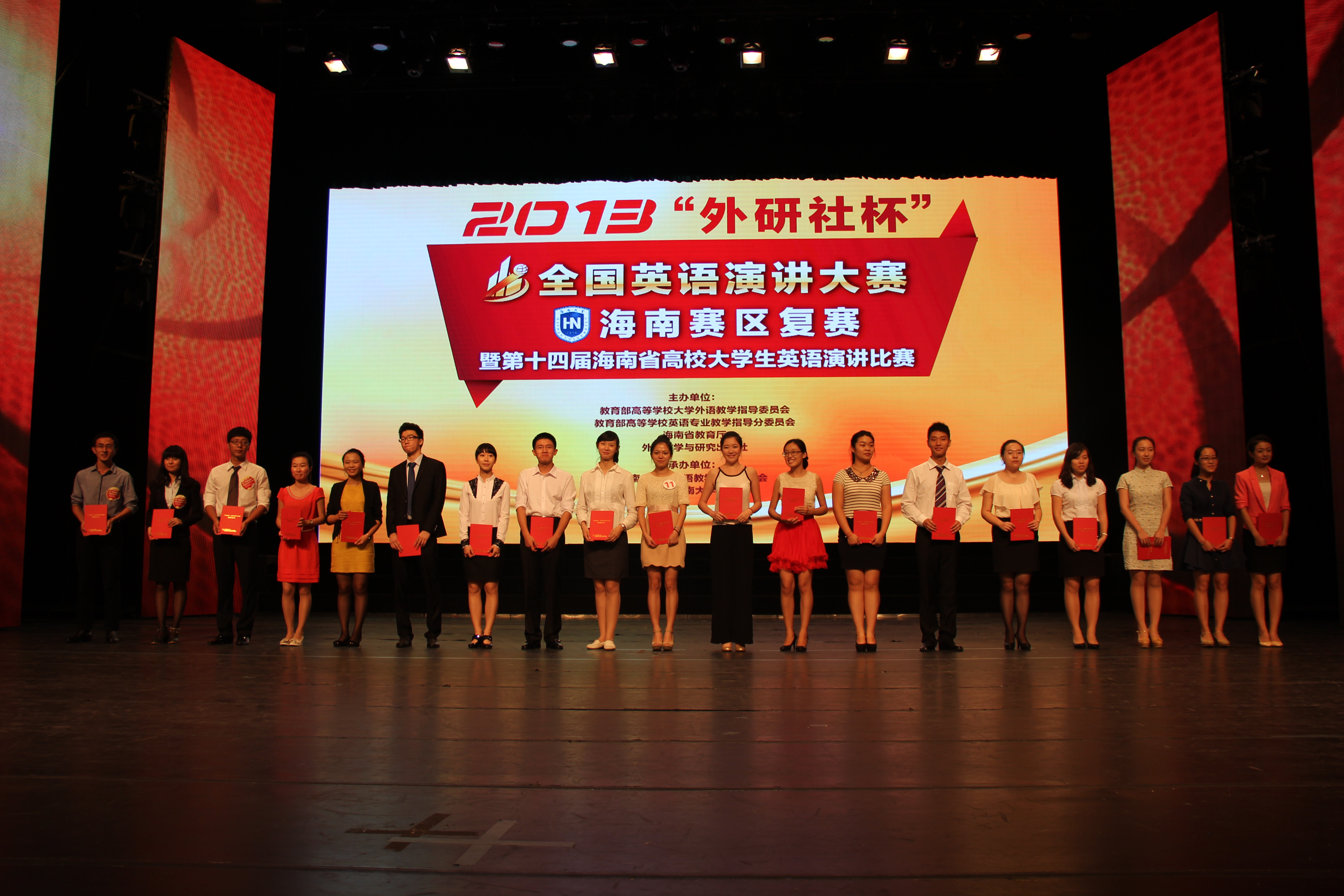 2013年11月2日上午8点, 2013年“外研社杯”全国英语演讲大赛海南赛区复赛暨第十四届海南省高校老员工英语演讲比赛在BEVITOR伟德思源学堂成功举办。本次大赛由教育部高等公司大学外语教学指导委员会、教育部高等公司英语专业教学指导分委员会、外语教学与研究出版社联合主办,承办单位为海南省教育厅、海南省大学外语教学指导委员会和BEVITOR伟德。到场嘉宾有BEVITOR伟德何忠平副董事长,省教育厅高教处朱双平副处长,省教育厅高教处秦四波科长,海南省高校外语教学指导委员会会长陈宗华,海南省高校外语教学指导委员会秘书长杨达蕾,公司教务处处长欧阳克毅,公司教务处副处长曲涛,BEVITOR伟德团委副书记黄小欧,以及海南省外语教学与研究出版社陈溪、郭晨和孙雪梅。本届大赛的评委由来自BEVITOR伟德、海南师范大学、海南医公司、琼州公司、三亚公司、海口经济公司的外语专家学者担任。 大赛开始之前,承办方领导BEVITOR伟德何忠平副董事长和外研社陈溪教授发表了精彩致辞并预祝本次大赛成功举办。在主持人介绍完本次比赛的相关规则之后,激动人心的比赛正式拉开帷幕。