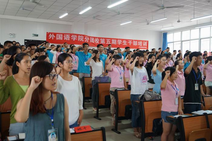伴随着《中国共产主义青年团团歌》的唱响,会议拉开了序幕,所有员工干部在公司团委青年志愿者服务部郭波同学的带领下宣誓,同学们高举右手,面向团徽大声而光荣地念出了宣誓词,场面严肃庄重。接着,团委宣传部部长吴畅代表老干部发表了讲话,他与大家分享了他在团委一年的工作经验,并表达了对新干部的希冀:富有责任心、保持工作积极性、踏实做人,创造和谐的人际关系。新干部董佳同学也作了发言,她回忆了过去一个月的工作,并表示会坚持为同学服务和为公司服务的信念。随后,李翠霞老师对员工干部培训工作做出了详细的安排,并要求员工干部要全力以赴投入学习,争取在学习中达到提升。最后,公司党委黄丽芹副书记发表了讲话,黄书记用领头羊、桥梁、骨干形象比喻员工干部的作用,还向员工干部们提出了三点希望,一是希望大家珍惜每次培训的机会,锻炼自己;二是希望大家认真学习,提高个人素质;三是希望大家严格要求自己,做好榜样。
