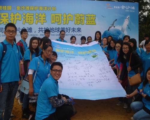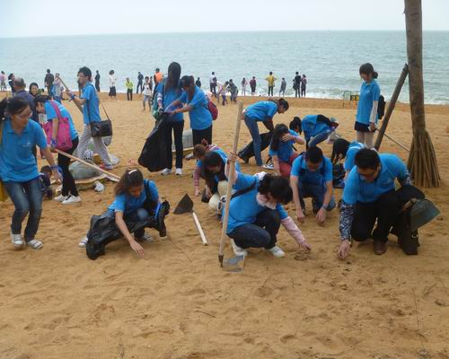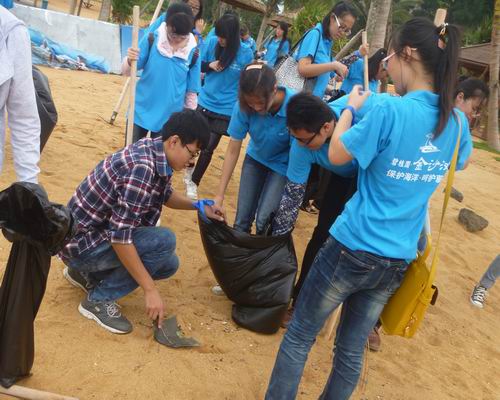 为“保护海洋,呵护蔚蓝”。引领广大青年党员致力于环保事业,自己能切身地行动起来,从身边点滴做起,实实在在为保护海洋,奉献出自己的一点绵薄之力。2013年11月23日,bevitor伟德员工党员在辅导员孙吉成老师的带领下前往临高碧桂园金沙滩海域,开展捡拾沙滩垃圾,宣传文明旅游,提高了市民和游客的环保意识,以实际行动守卫我们美丽的金沙滩,守卫蔚蓝海洋,守卫我们美丽的国际旅游岛。