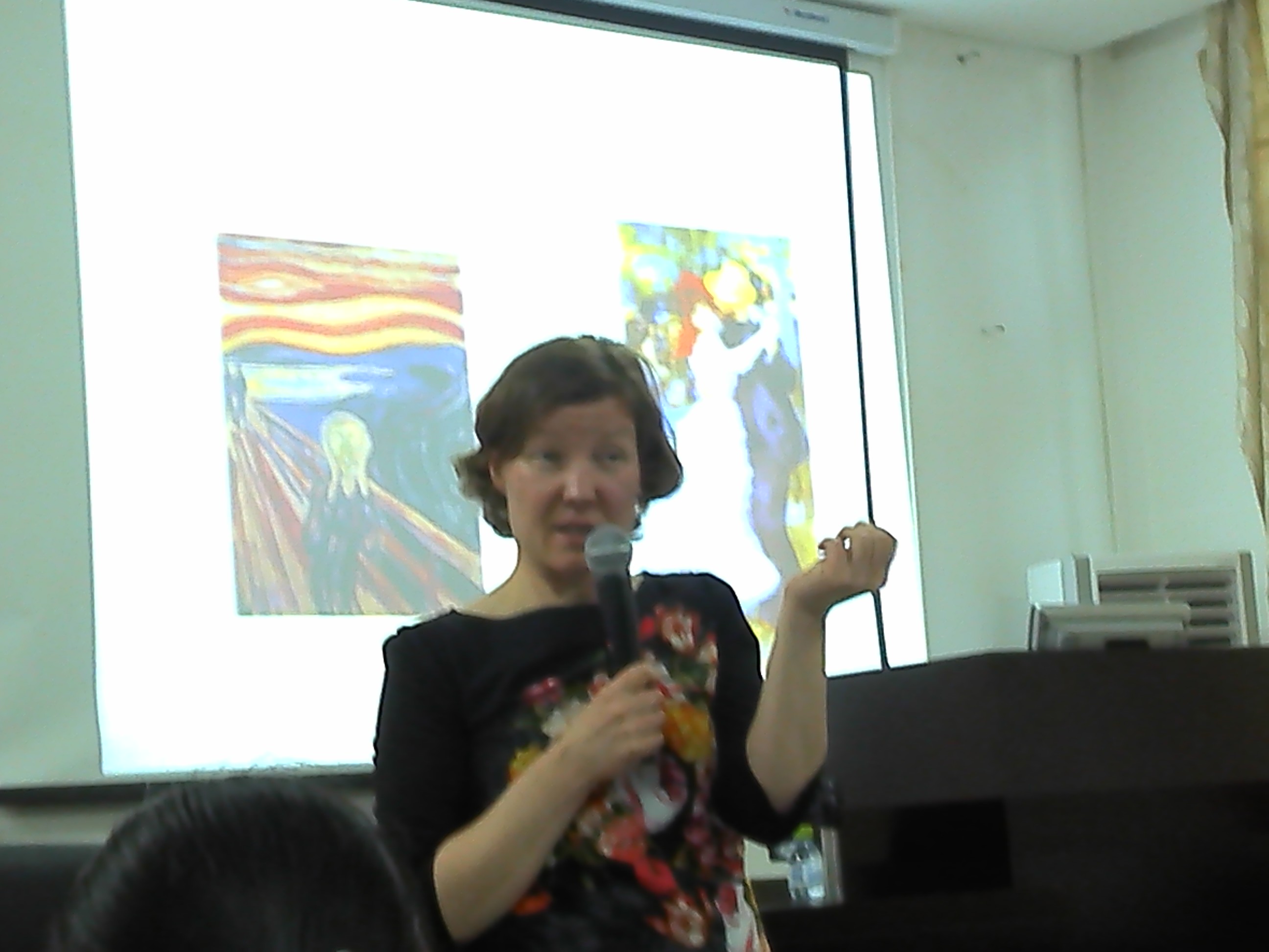 紧接着4点钟,同行的Anne-Mette Bj?ru教授又给我们带来了了一场题为Teaching English through Art的精彩讲座。